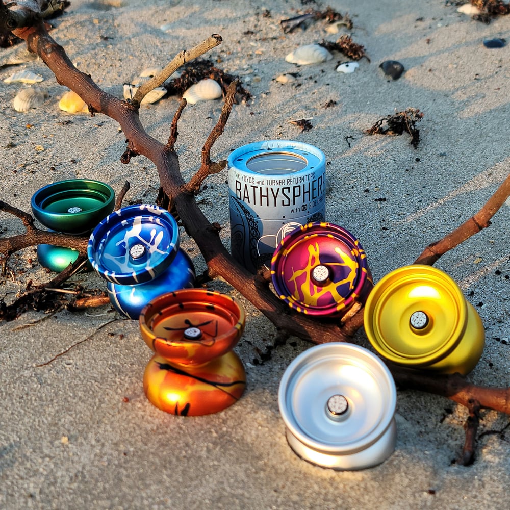 Bathysphere is a precision machined modern unresponsive return top (yoyo). Unresponsive meaning the yoyo does not return on a string tug. Instead, a bind trick must be performed to make the yoyo return.