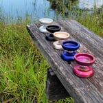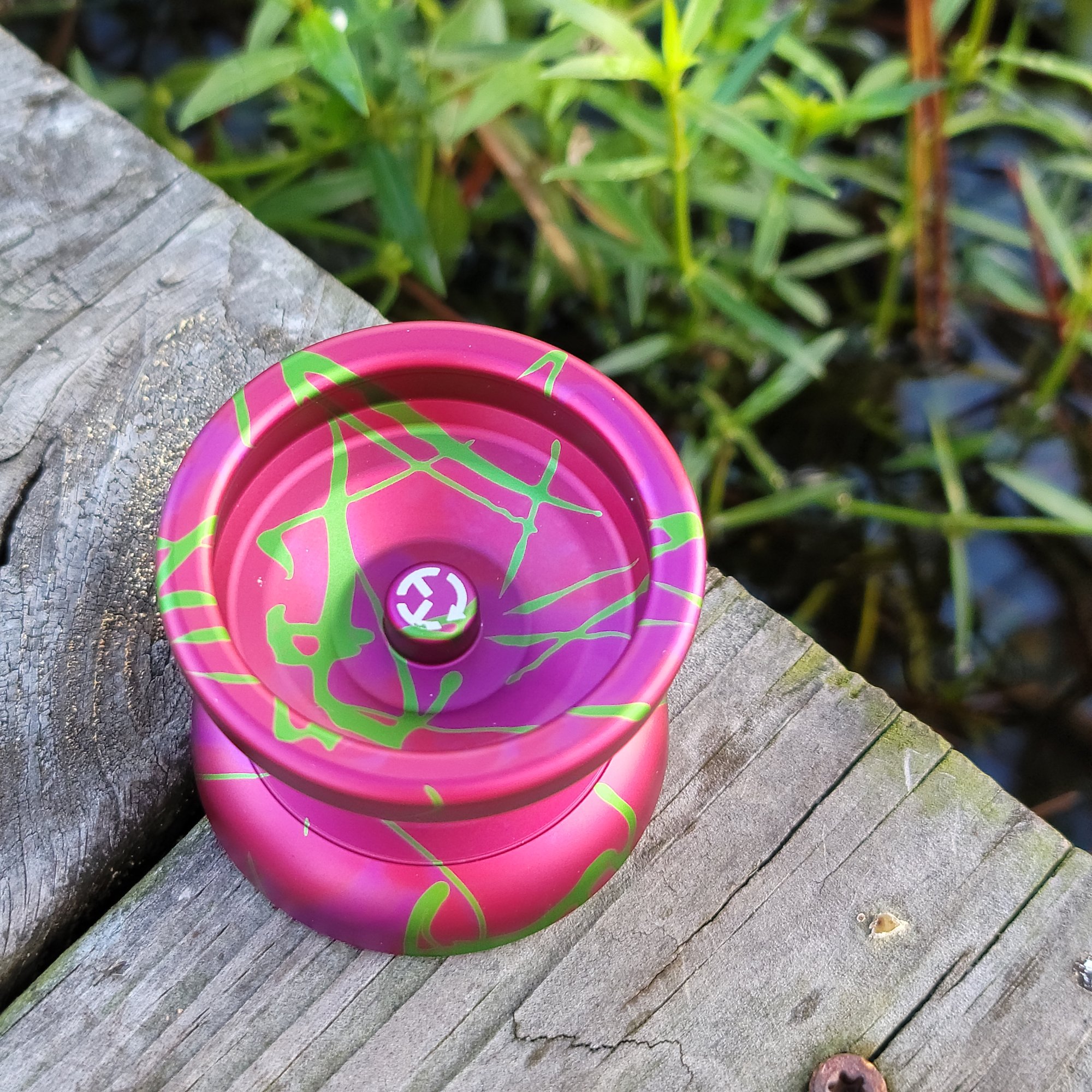 -Dragon Fruit (Pink on purple acid wash with green splash. Discounted for anodization flaws, shiny pin prick spots.)
